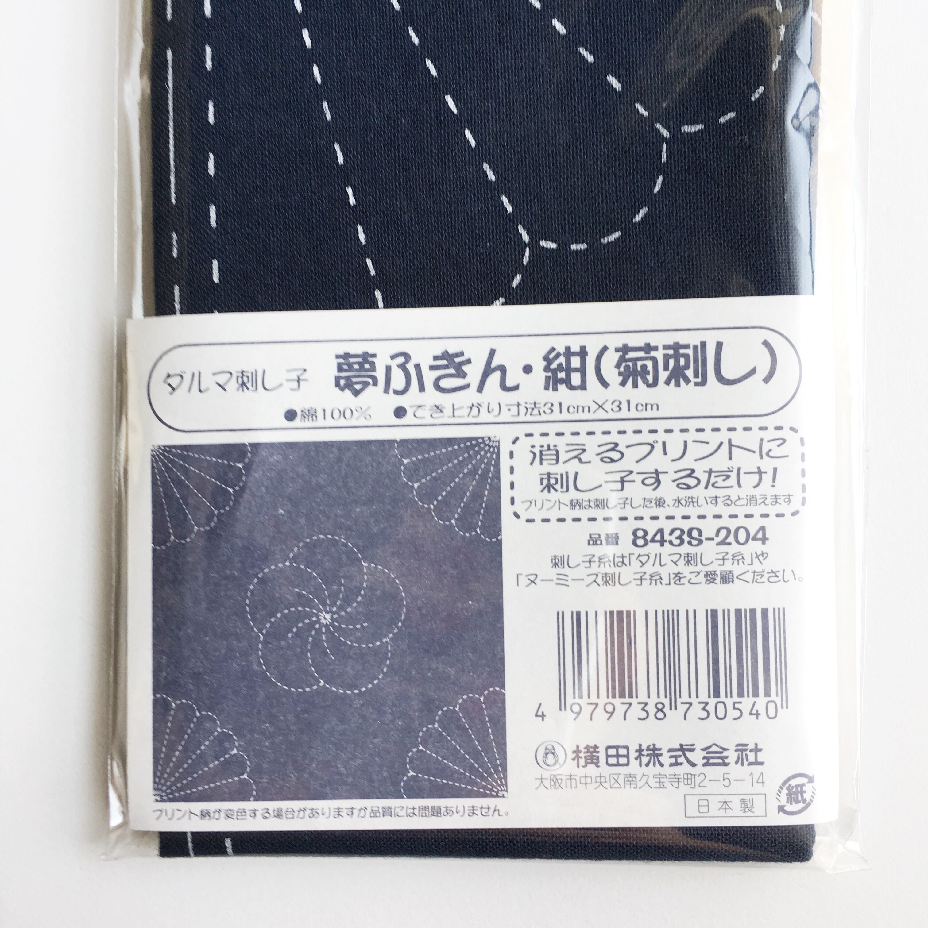 ダルマ刺し子:夢ふきん (菊刺し):紺 - Yume Fukin Blue "Kikuzashi" - 843S-204