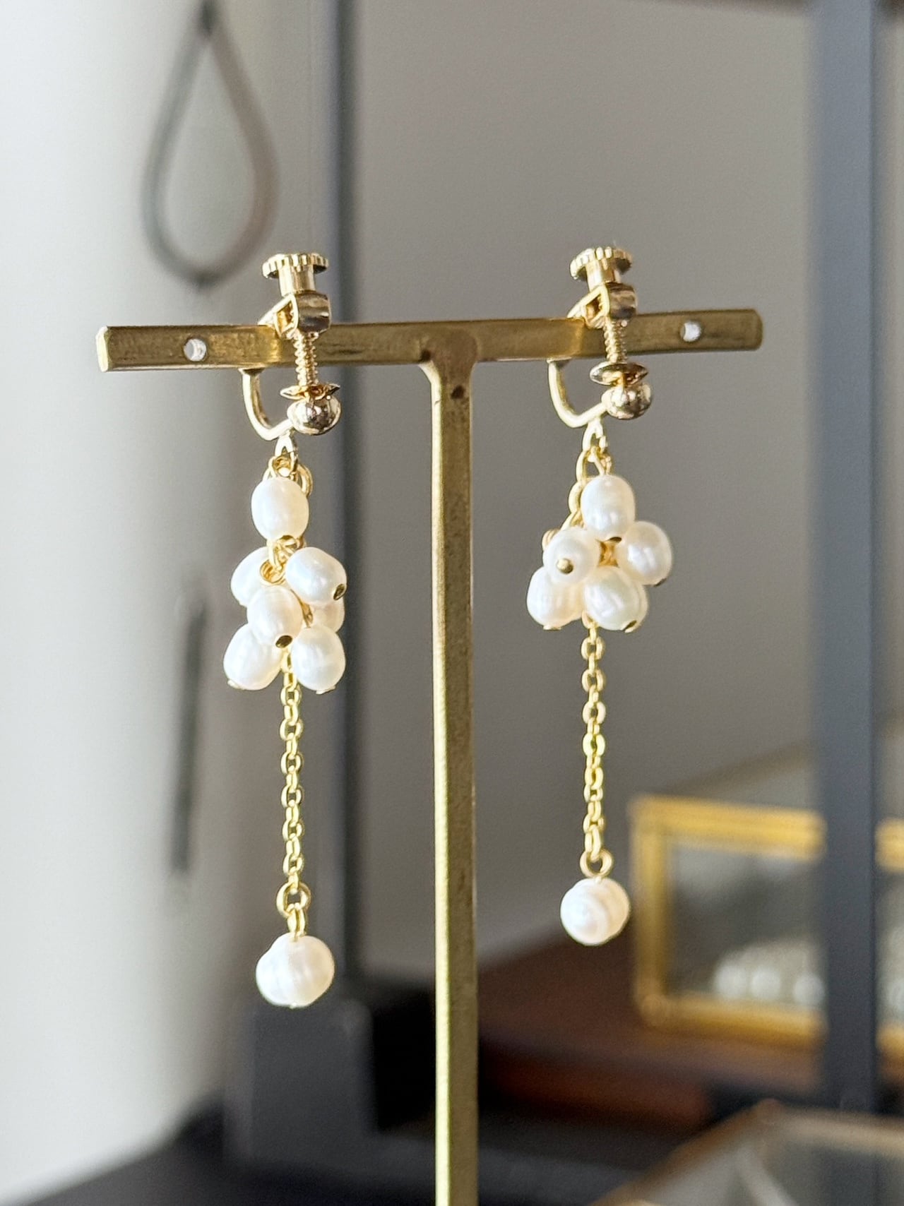 耳元でやさしく揺れる、淡水パールのイヤリング/ピアス。