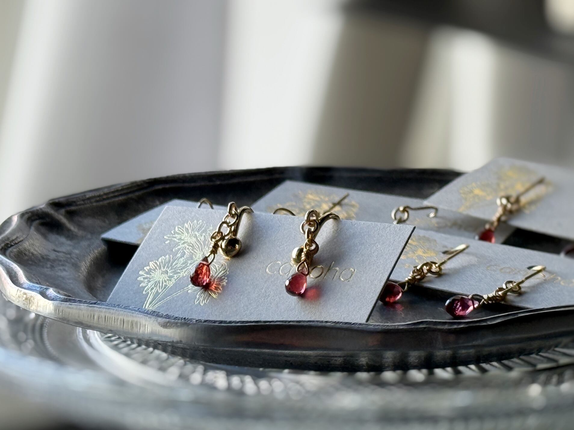 ユニセックス【1月の誕生石】耳元に宿す、小さな決意。ガーネット一粒ピアス/イヤリング
