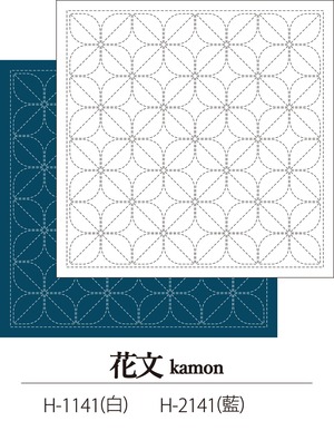 刺し子糸1かせ20mで刺すことができる花ふきん布パック、花を連想させる模様を伝統文様風のデザイン。