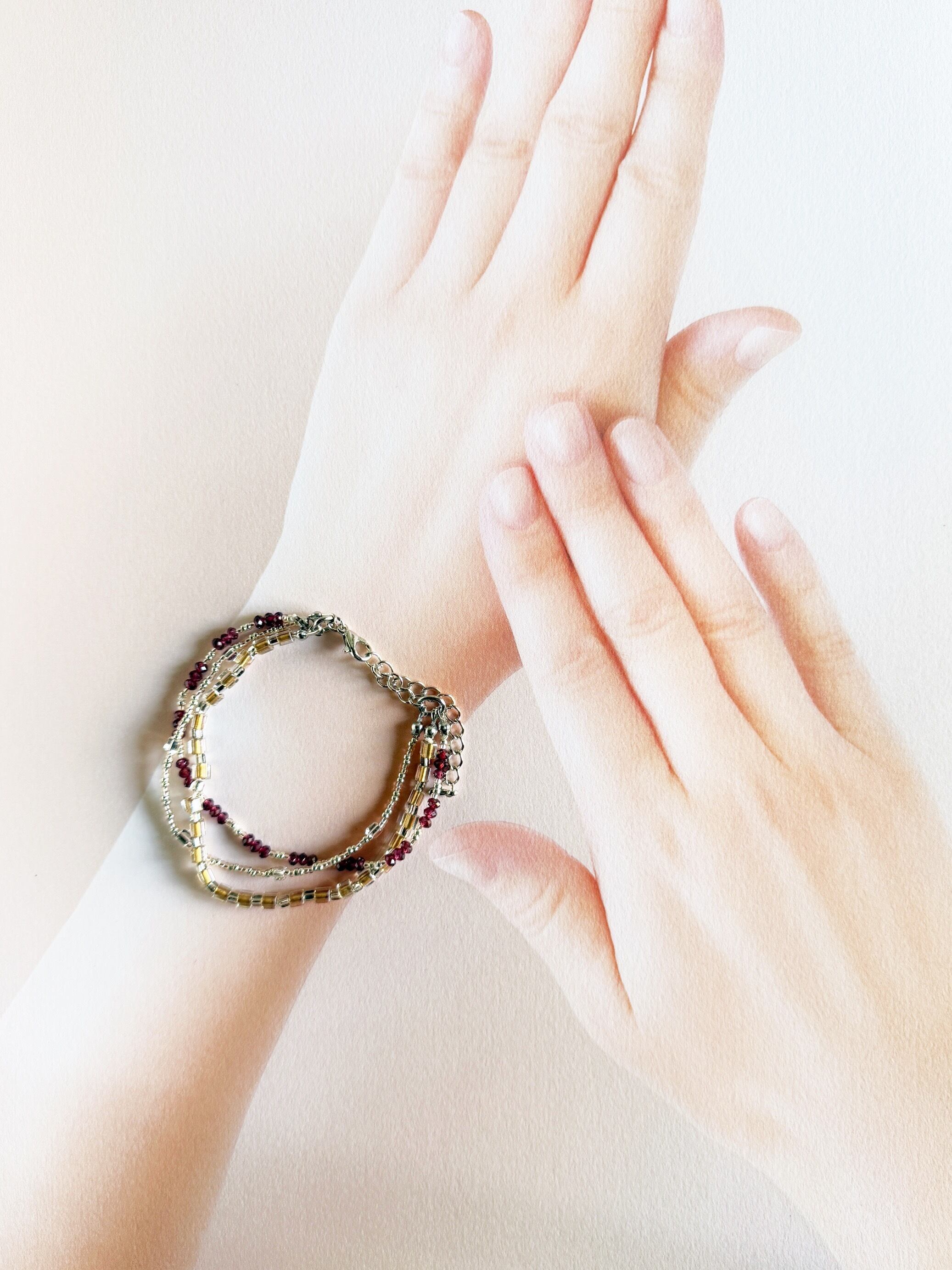 【1月の誕生石】積み重ねた時間に、静かな輝きを。きらめくガーネット 3連ブレスレッド Vol.2