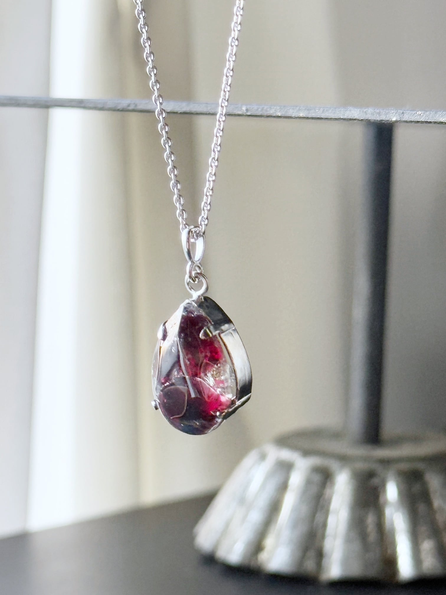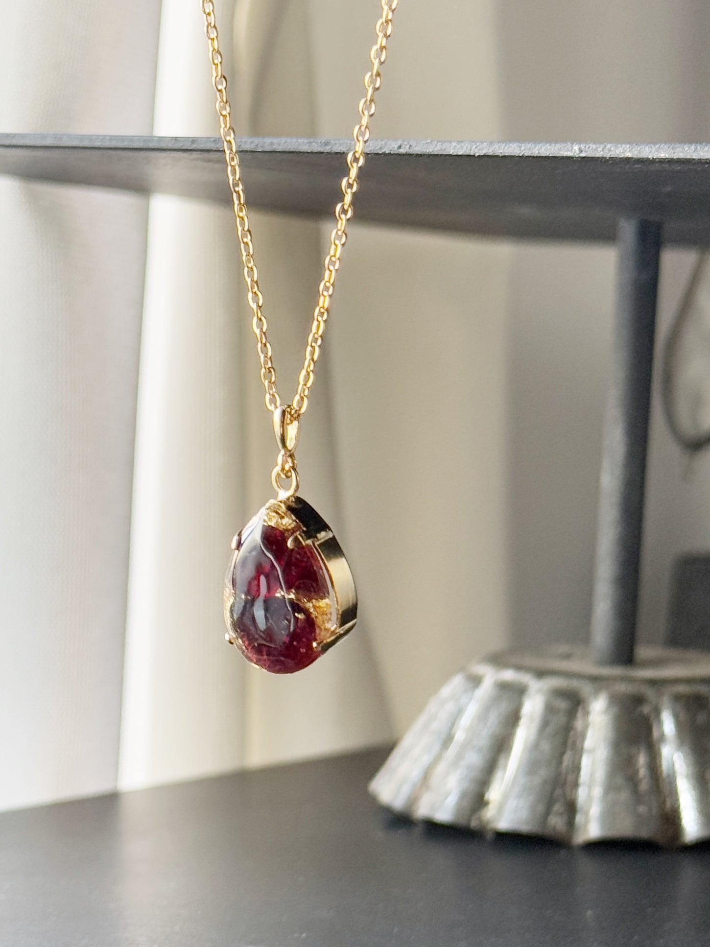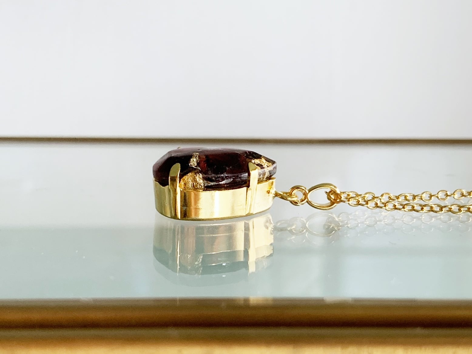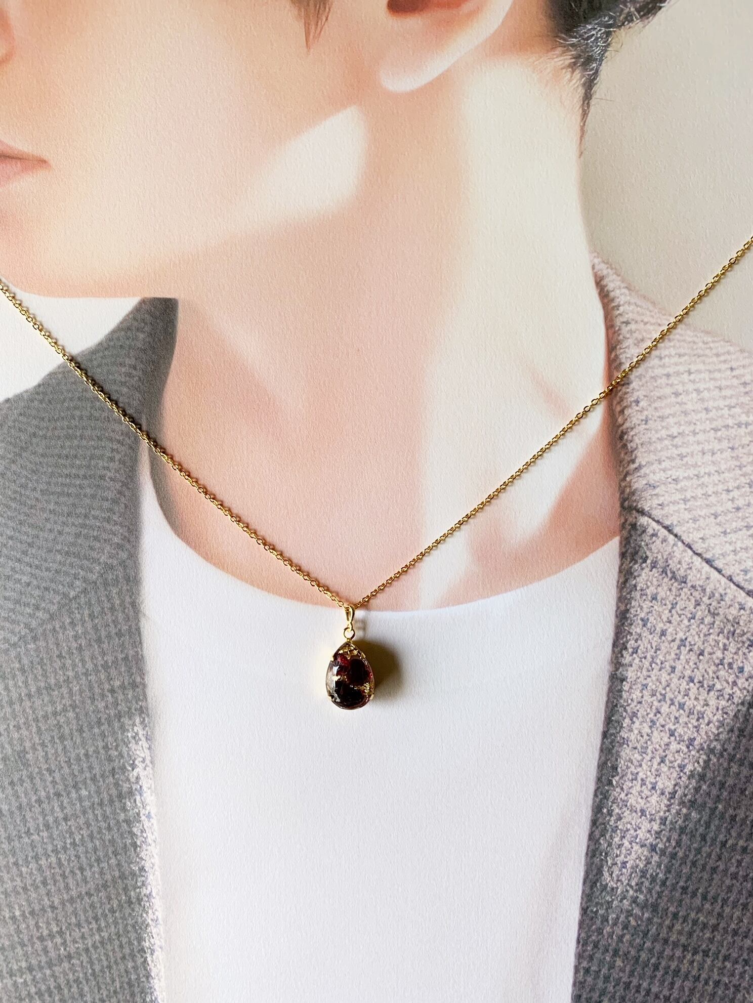 ユニセックス 【1月の誕生石】静かな意志を胸元に。ガーネット・レジン・ネックレス(45-55cm)
