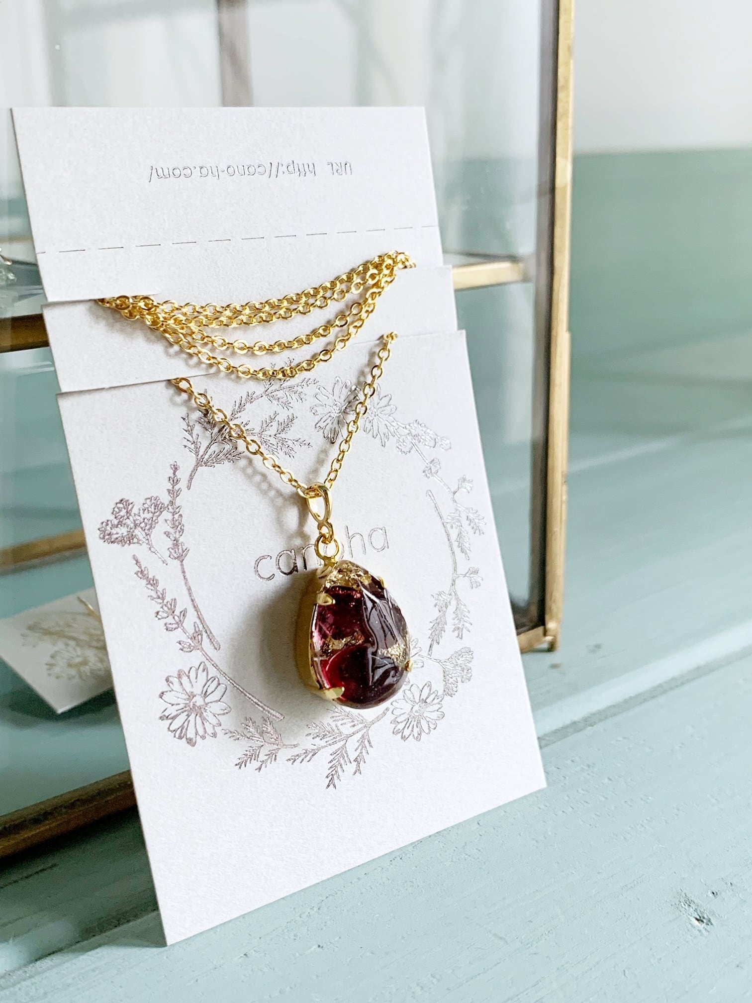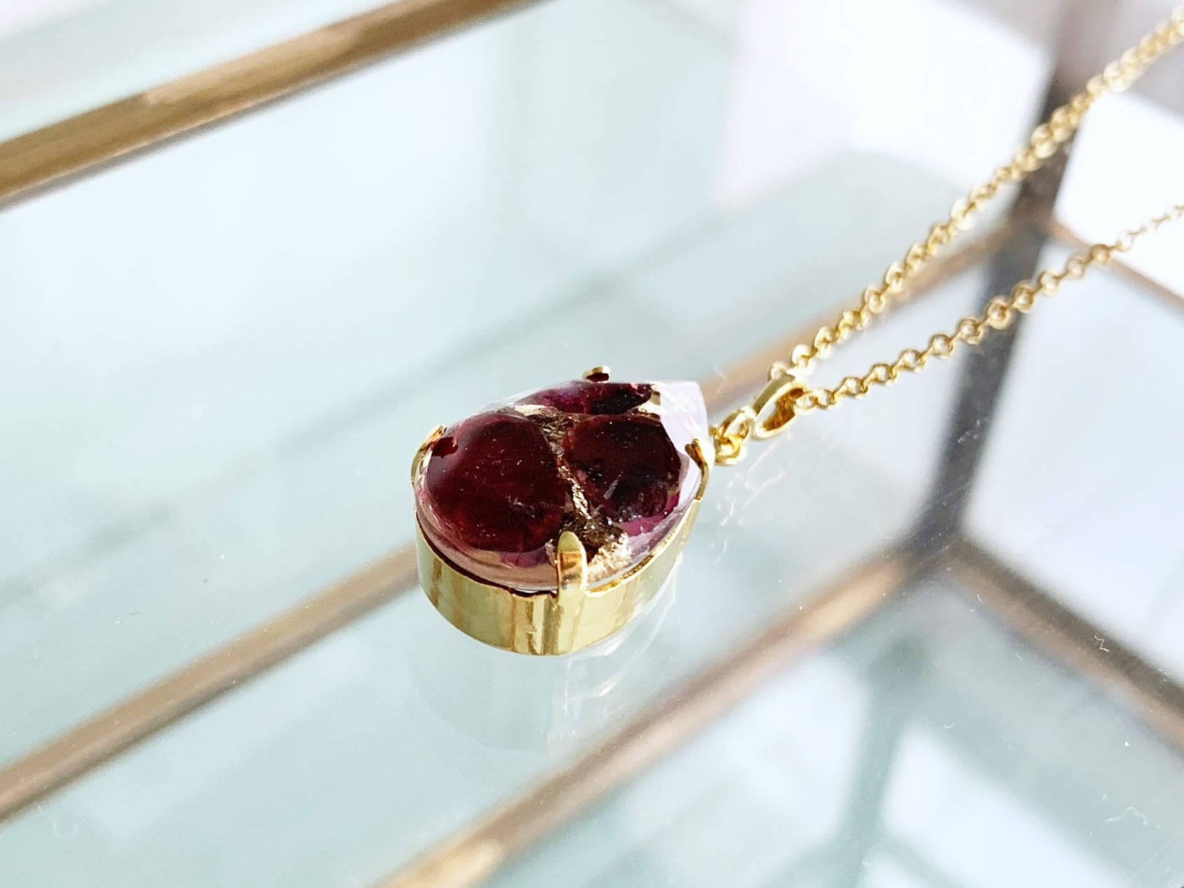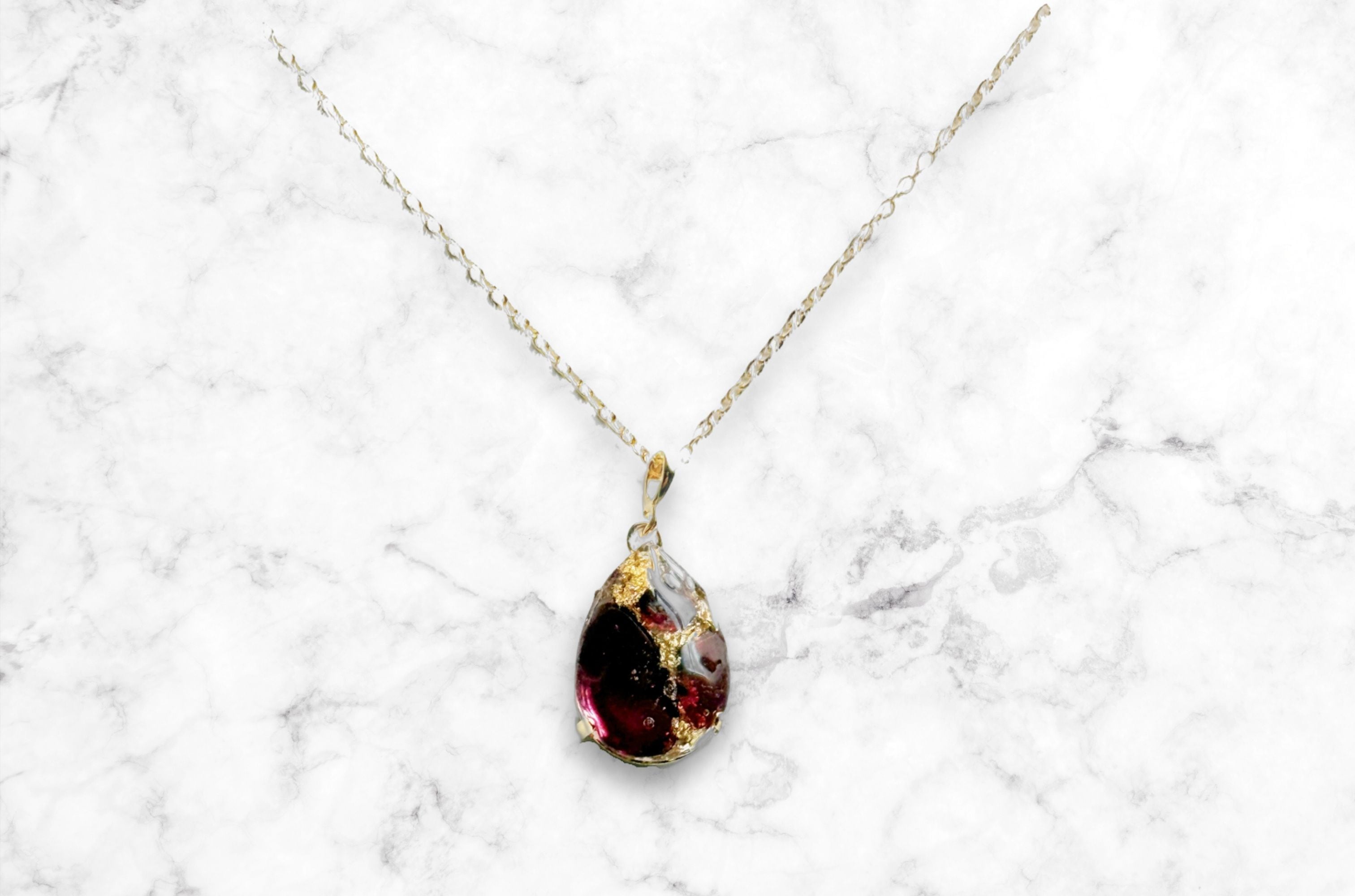 透明なレジン(樹脂)の中に閉じ込めたネックレスです。