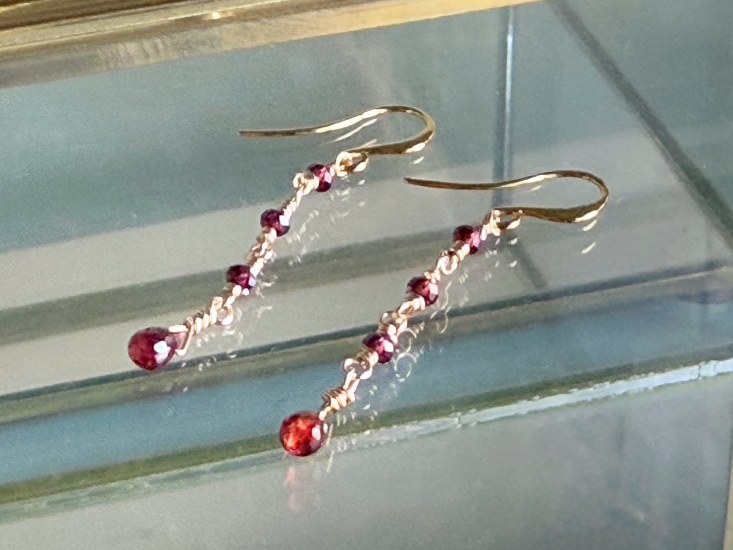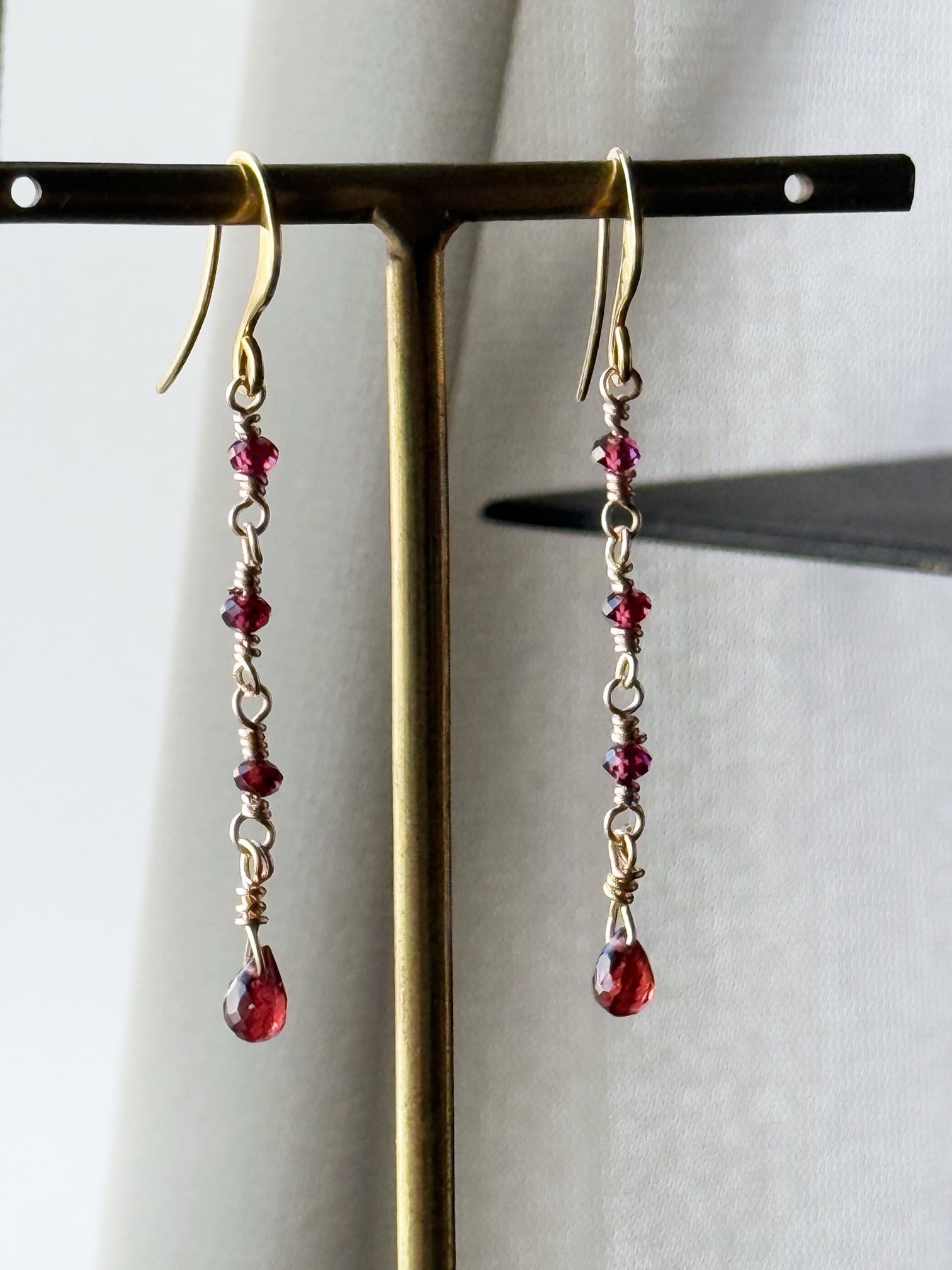 先端には、カットの美しいドロップ型ガーネットを添えました。