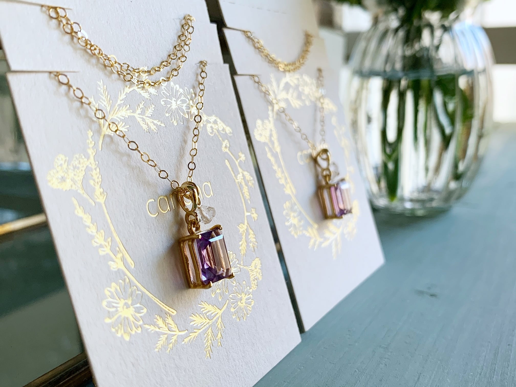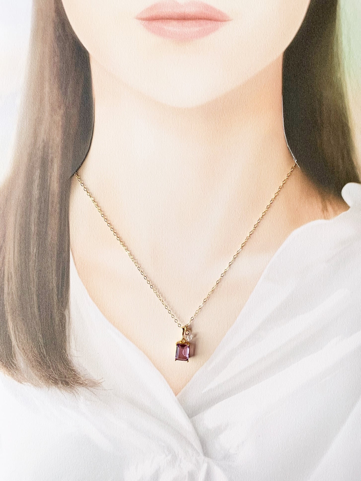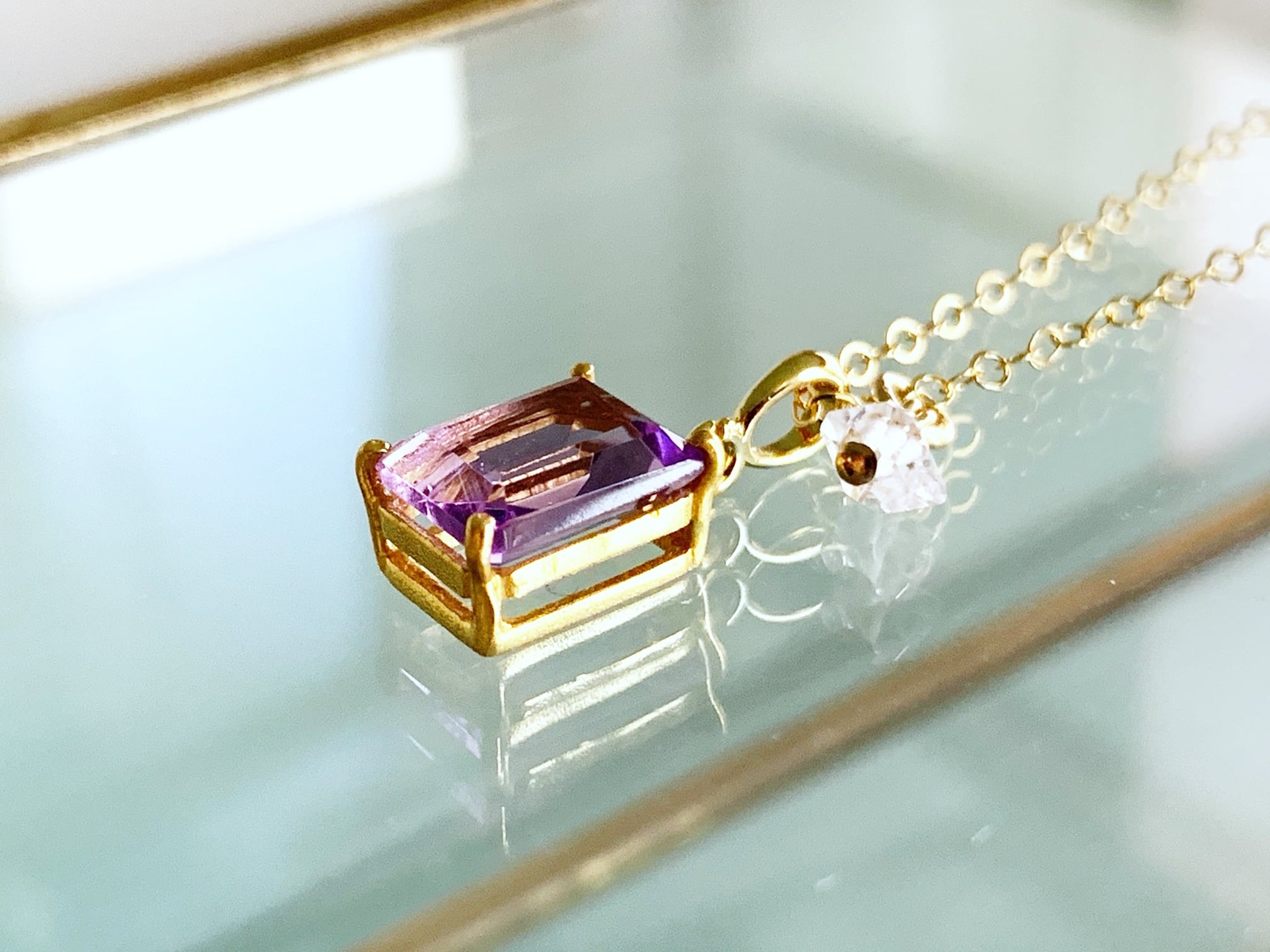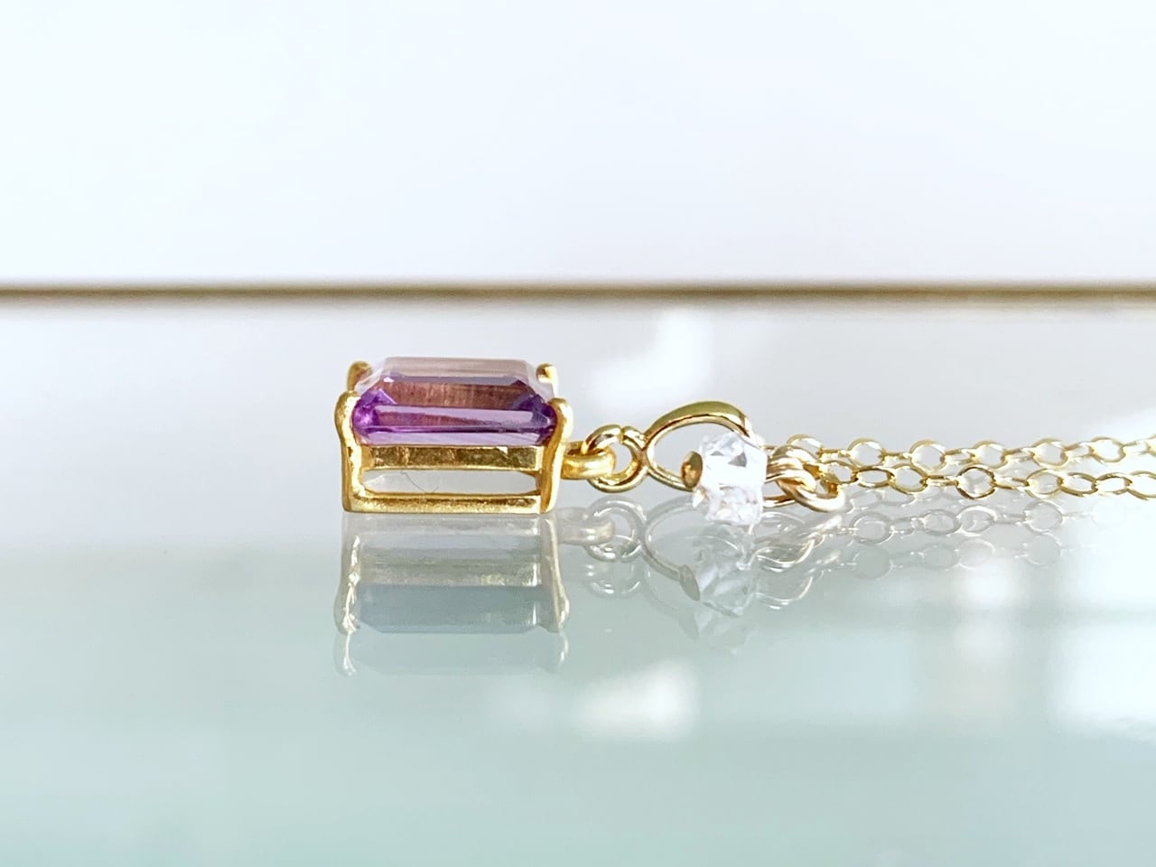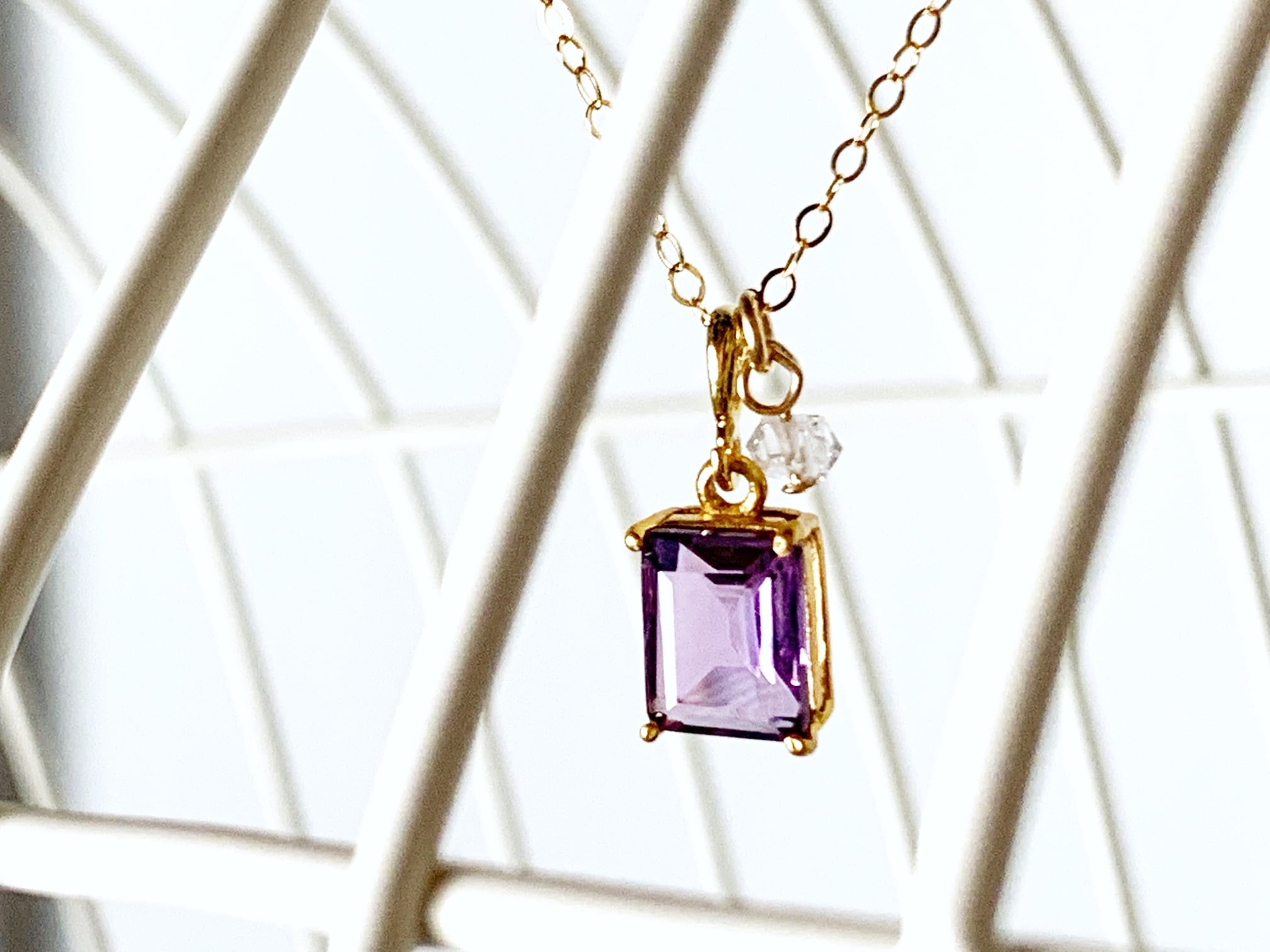 【2月・4月の誕生石】願いを澄ませ、次の一歩へ。アメシストとハーキマーダイヤモンド(水晶)のネックレス(K14GF)
