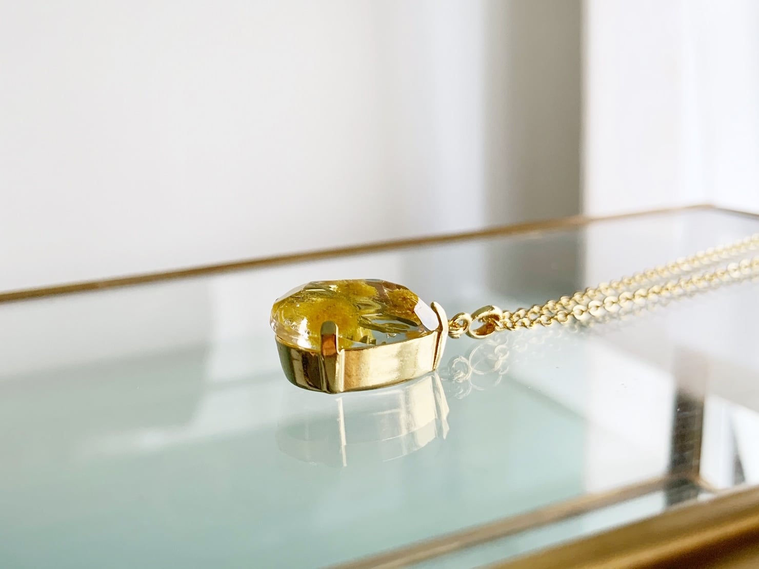 透明感のあるレジン(樹脂)の中にそっと閉じ込めたネックレスです。
