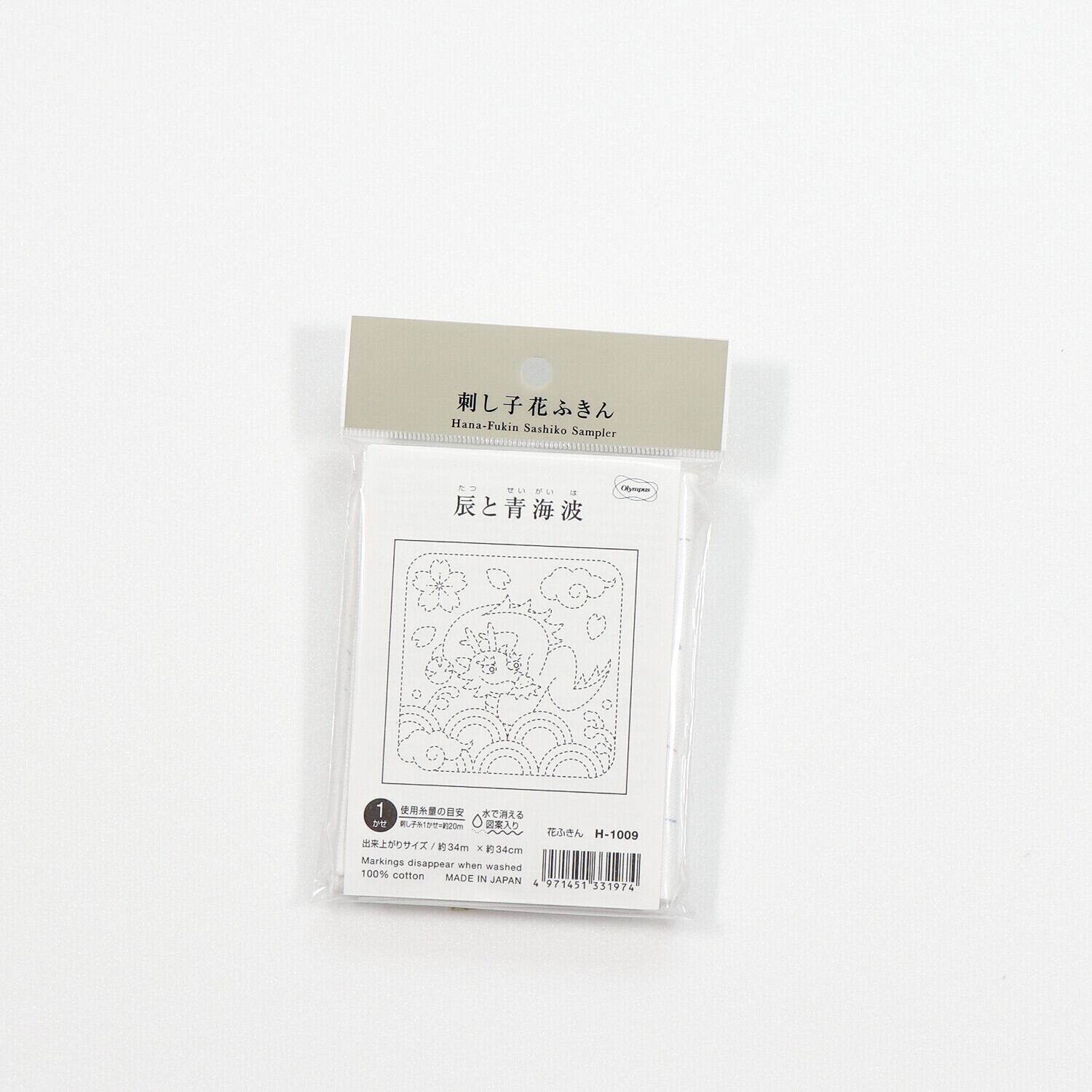 オリムパス花ふきん『辰と青海波』(白) (H-1009)