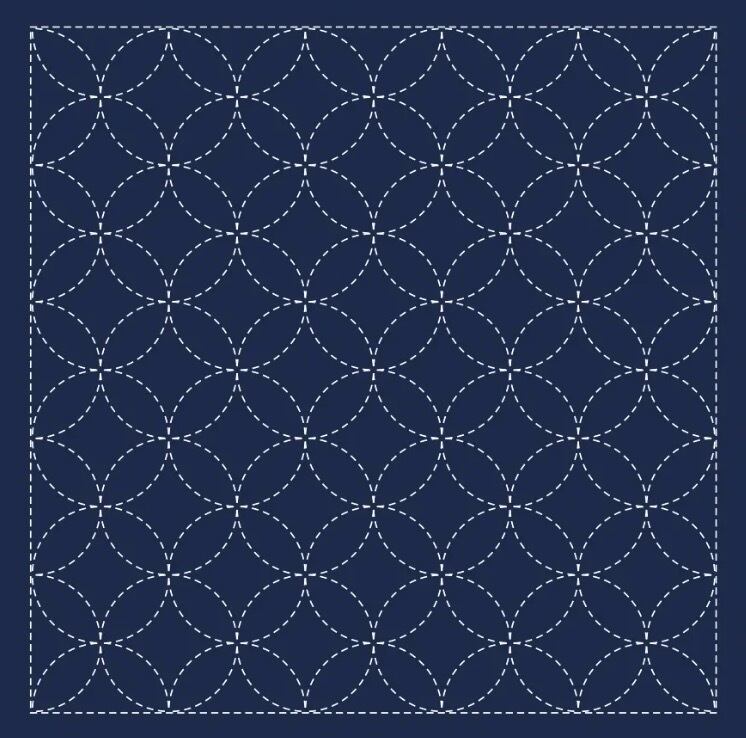 ダルマ刺し子ふきん模様刺し(紺)「七宝つなぎ (1203) 」:DARUMA Sashiko Fukin Deep Blue "Seven-Treasures" - 1203