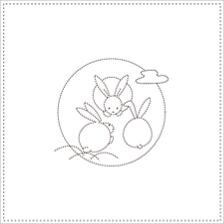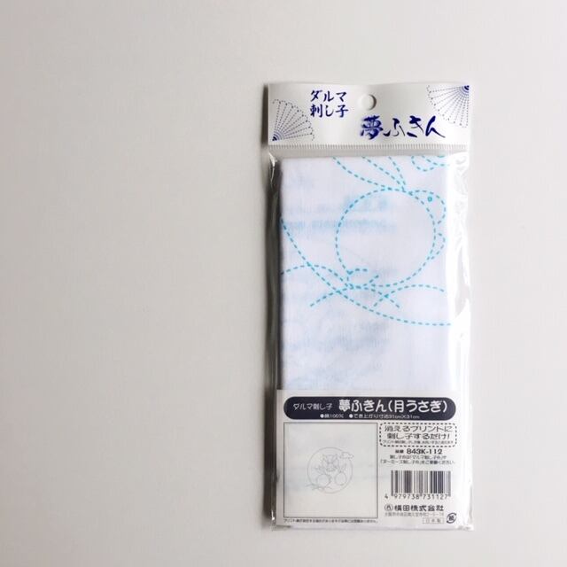 ダルマ刺し子:夢ふきん (月うさぎ):白 - Yume Fukin White " Tsuki-Usagi" - 843K-112