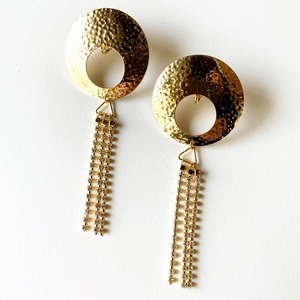 揺れるクリスタルチェーン・ゴールドラウンド・イヤリング/ピアス