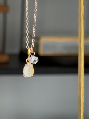 【4月・10月の誕生石】才能を咲かせる光、オパールがくれる私の勇気。オパール&ハーキマーダイヤモンド K14GFスキンネックレス