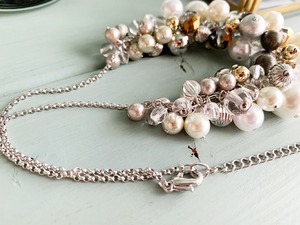 パールビーズをメインにメタルビーズや天然石を盛り込みました。