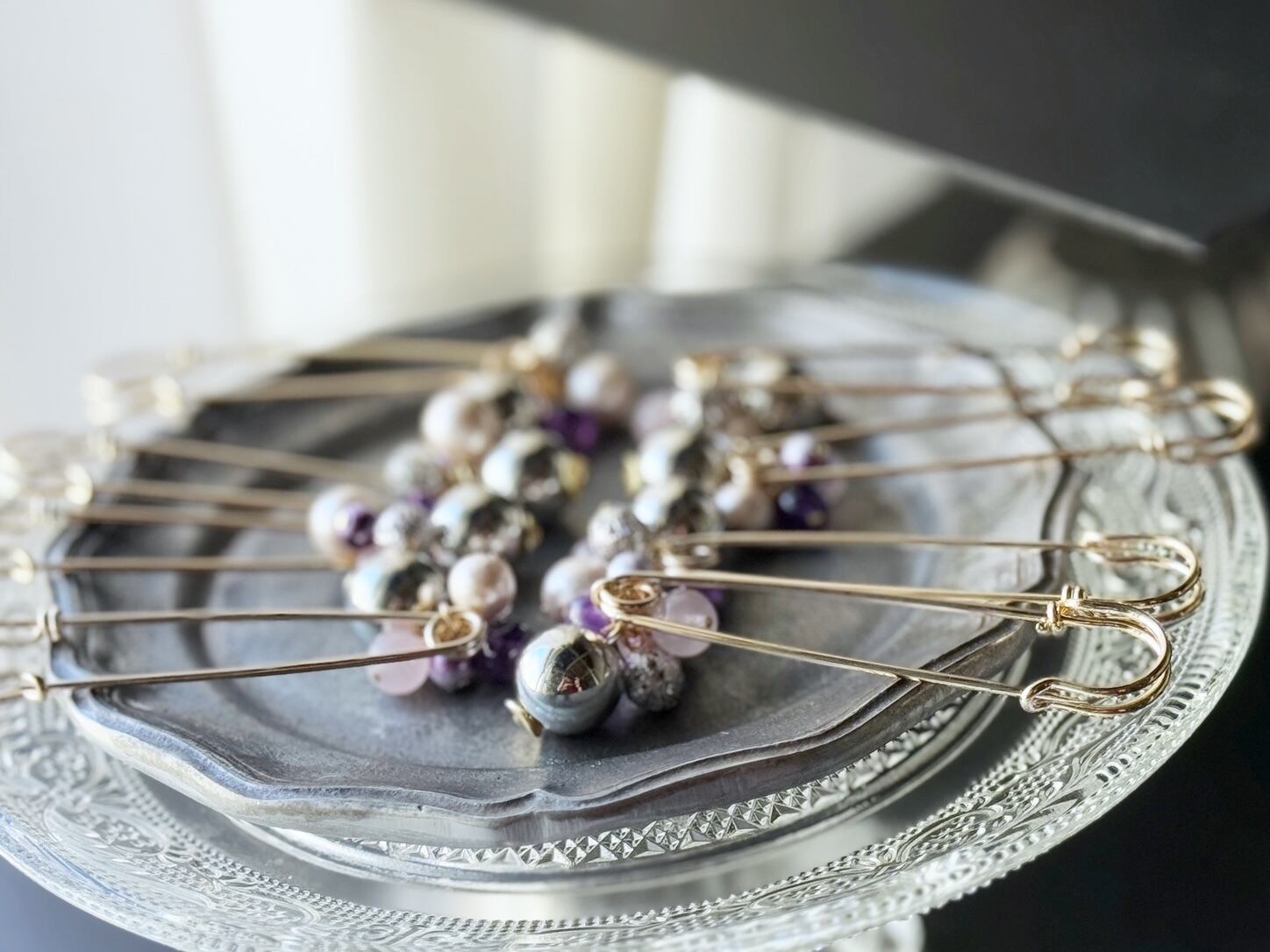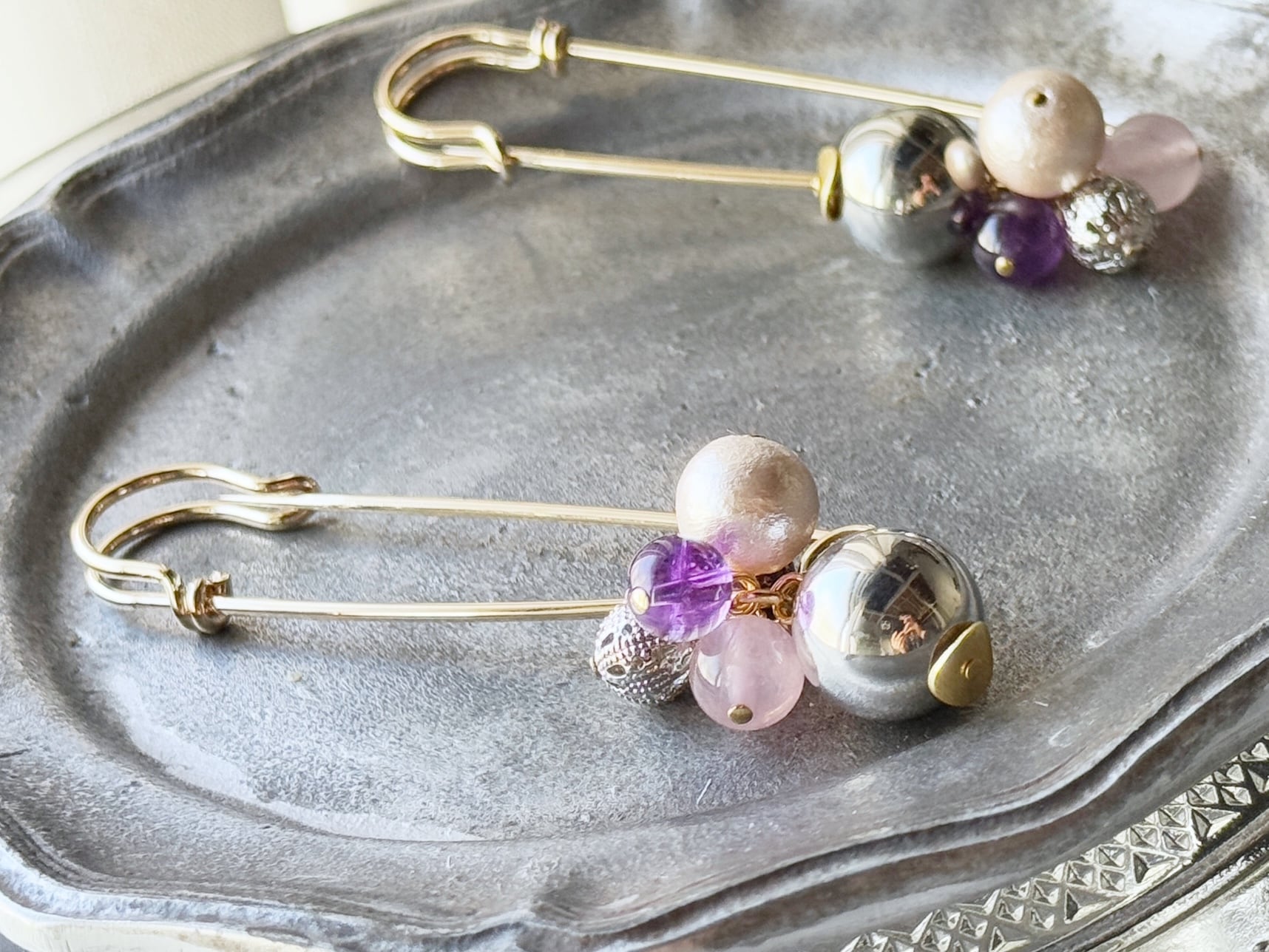 【2月の誕生石】強さとやわらかさをひとつに。アメシストとローズクォーツのストールピン/ショールピン